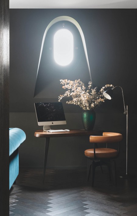 Gris oscuro casi negro. La idea central de esta reforma es crear una atmósfera acogedora y contemporánea, pero con detalles que dieran una fuerte personalidad al espacio. Los clientes no solo querían resolver una función, sino que deseaban que su casa fuera un espacio dotado de vida y carácter. Esto se ha conseguido a través de una distribución fluida, aderezada con texturas y colores intensos. La escala de grises y azules le da al espacio una pátina de nobleza y eclecticismo.