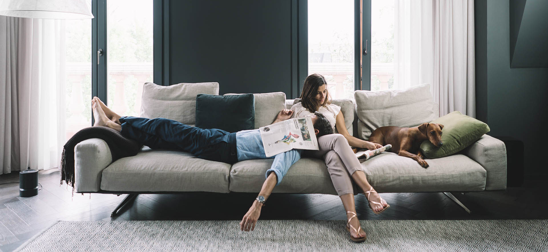 Gris oscuro casi negro. La idea central de esta reforma es crear una atmósfera acogedora y contemporánea, pero con detalles que dieran una fuerte personalidad al espacio. Los clientes no solo querían resolver una función, sino que deseaban que su casa fuera un espacio dotado de vida y carácter. Esto se ha conseguido a través de una distribución fluida, aderezada con texturas y colores intensos. La escala de grises y azules le da al espacio una pátina de nobleza y eclecticismo.