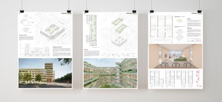 El proyecto presenta en sus fachadas amplias aberturas que albergan espacios llenos de vegetación y que, estratégicamente conectadas entre sí, ofrecen al habitante una ruta verde desde la planta baja hasta el sexto piso. Este recorrido verde contiene un diverso programa semi-publico constituido por jardines urbanos, canchas deportivas, parques infantiles o espacios comerciales.