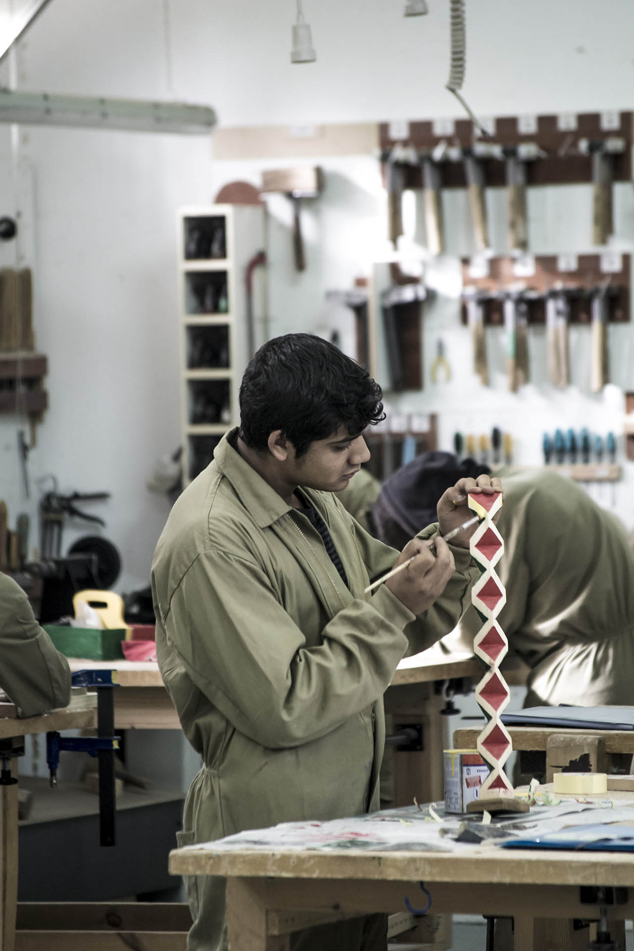 La máquina amarilla—como pieza estrella— se sitúa bajo el lucernario del vestíbulo de entrada, una posición privilegiada para un elemento, que por su sinceridad constructiva, constituye un objeto didáctico del que los estudiantes puedan aprender.